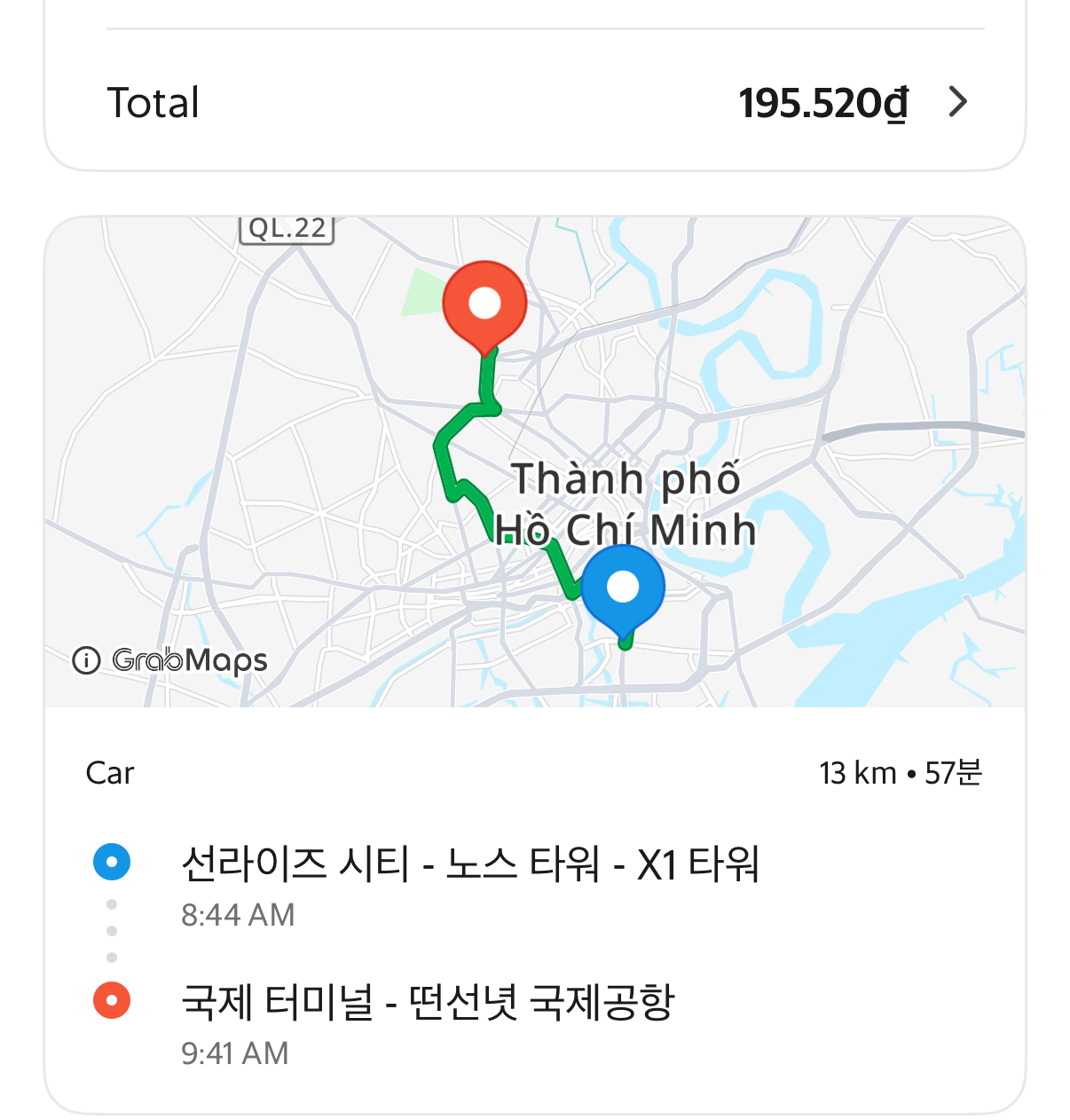현재 선라이즈 노스타워->공항이동 소요시간