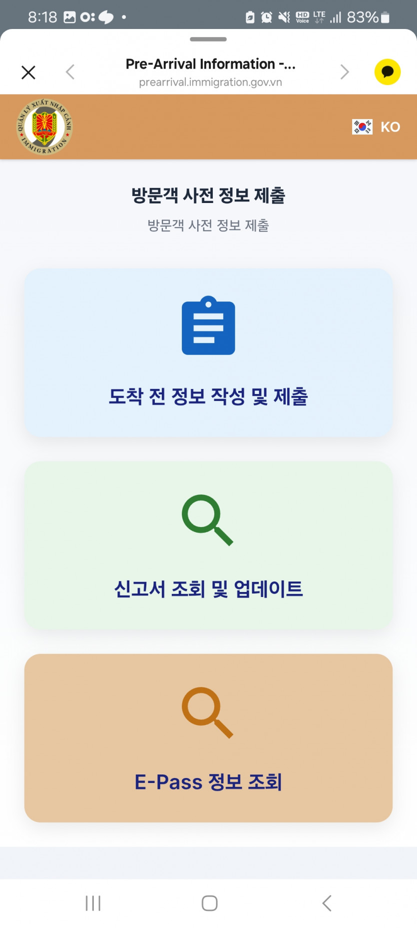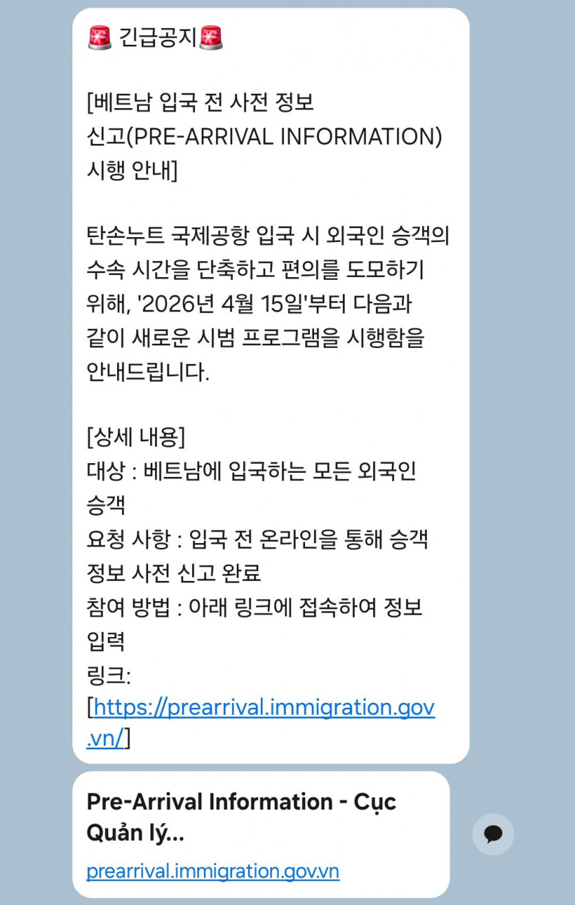 베트남 입국전 사전 정보 신고라는데