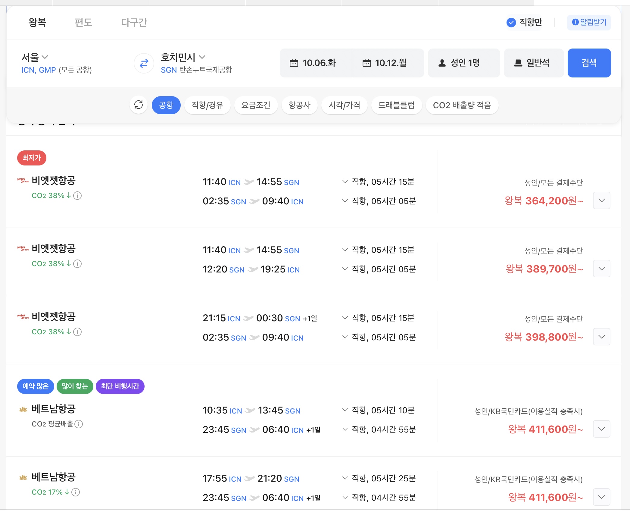 지금 현재 10월 비행기값~~~^^ 한사람 7 181 0 20:34 일정 조율하다가….비행기 티켓 조회를 했는데 날짜에 따라서 차이가 좀 심하게 나오네요~~^^역시 비엣젯항공~~~^^참고하세요…~~~~~^^ 0