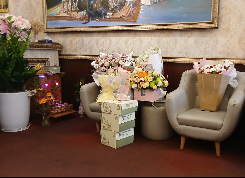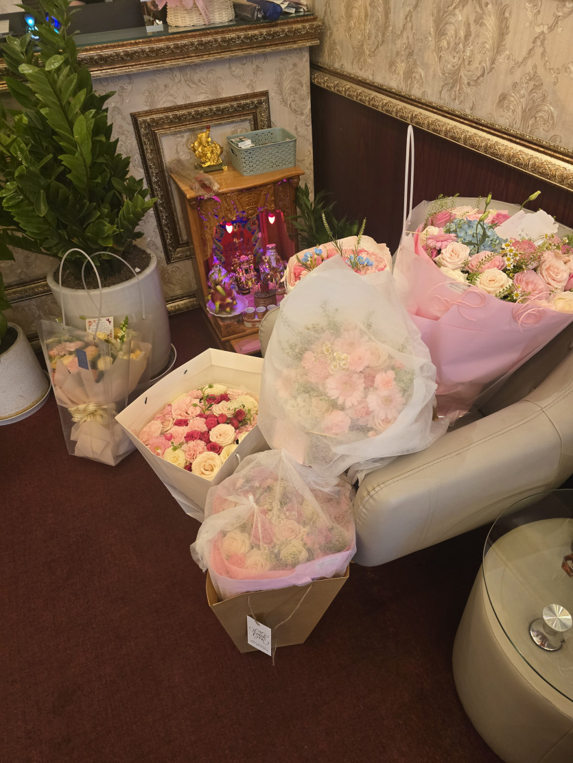 다른 관리사들이 꽃과 선물을 준비하고,