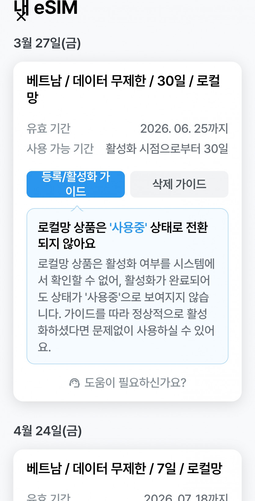 esim 등록하려다가