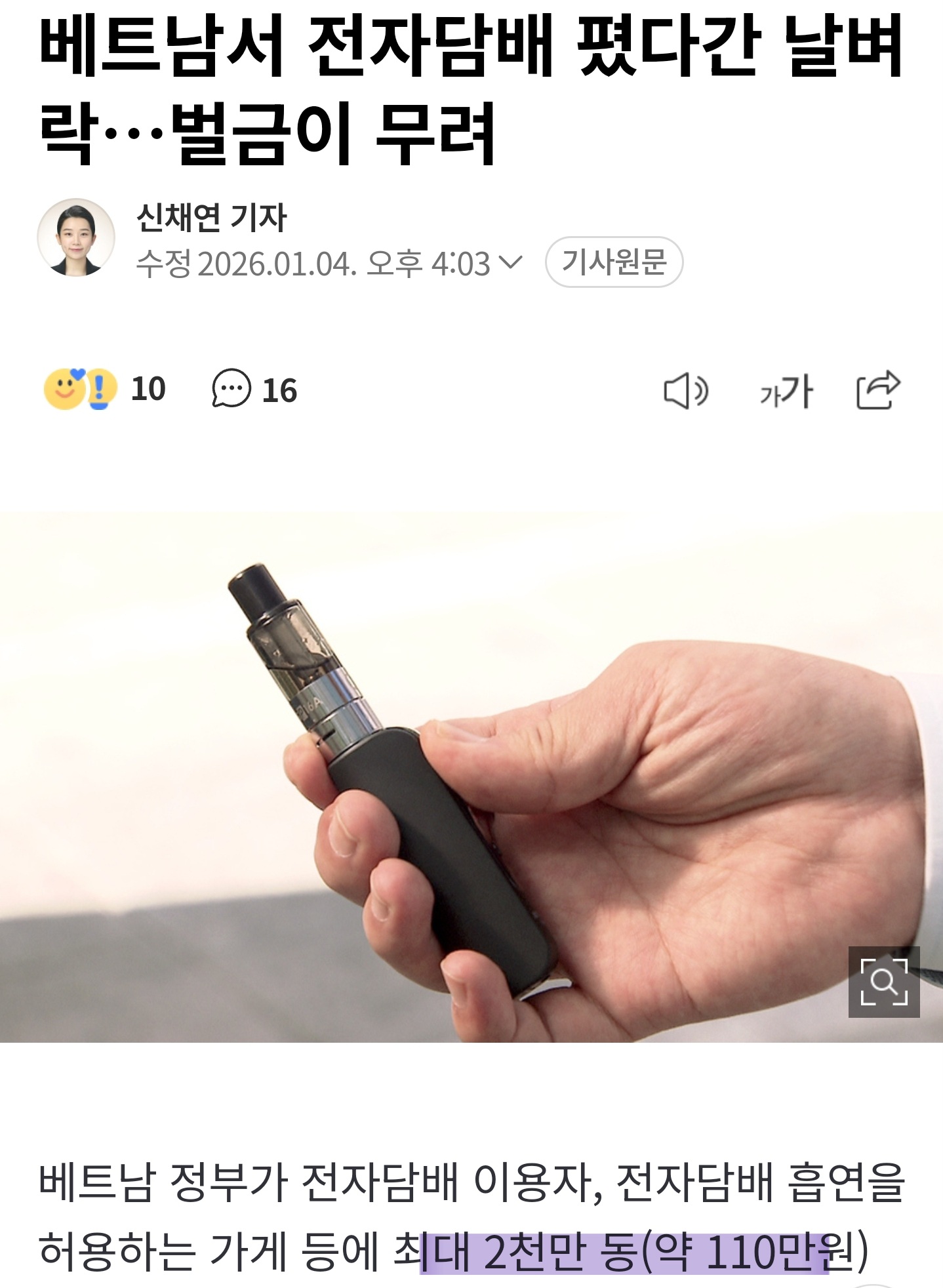 베트남 전자담배 금지기사