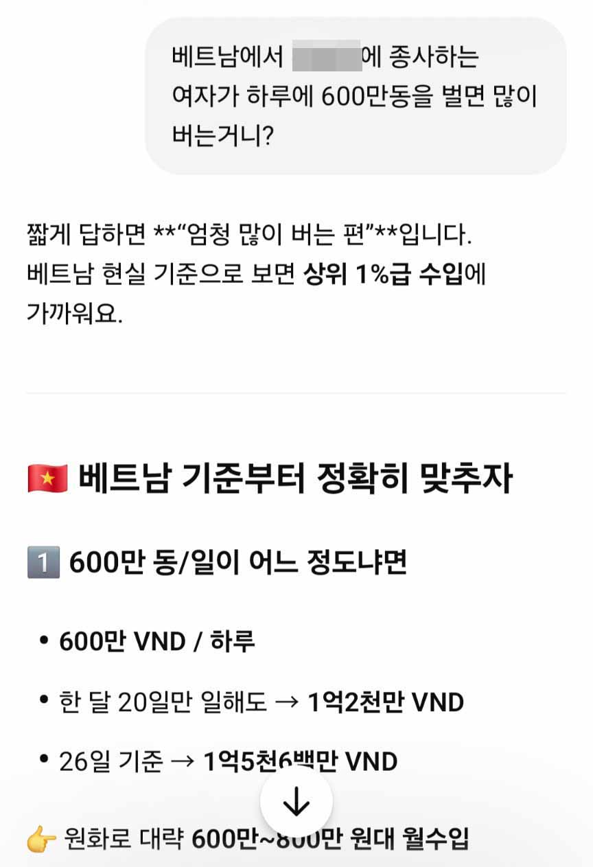 챗GPT에게 일당 600만동을 물어보니