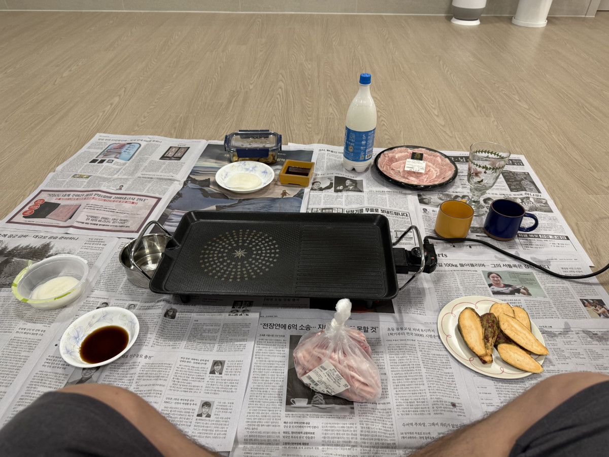 어제는 집에서 가족들과 삼겹살 항정살 맛있게 구워먹고 야식으로 라면 한개 먹었습니다. 막걸리 혼자거 1개 먹으니 소주 1병먹은것 보다 더취하네요.