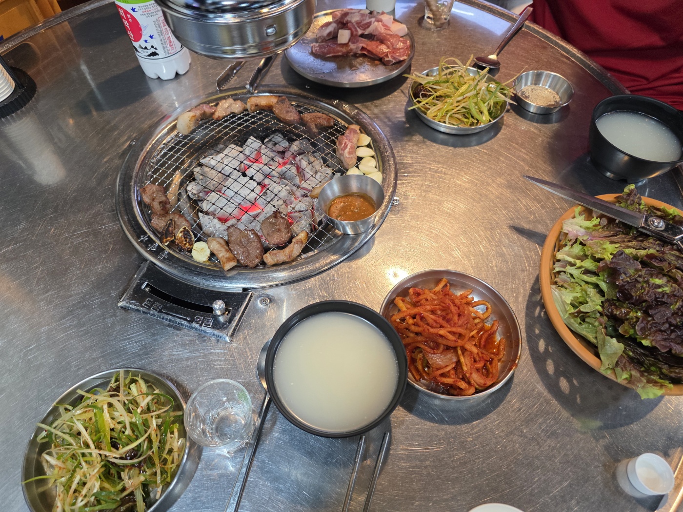 막걸리 한 병을 둘이 나눠 마셨습니다.