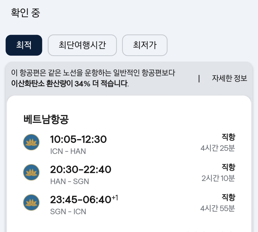 인천 > 하노이 > 호치민 > 인천