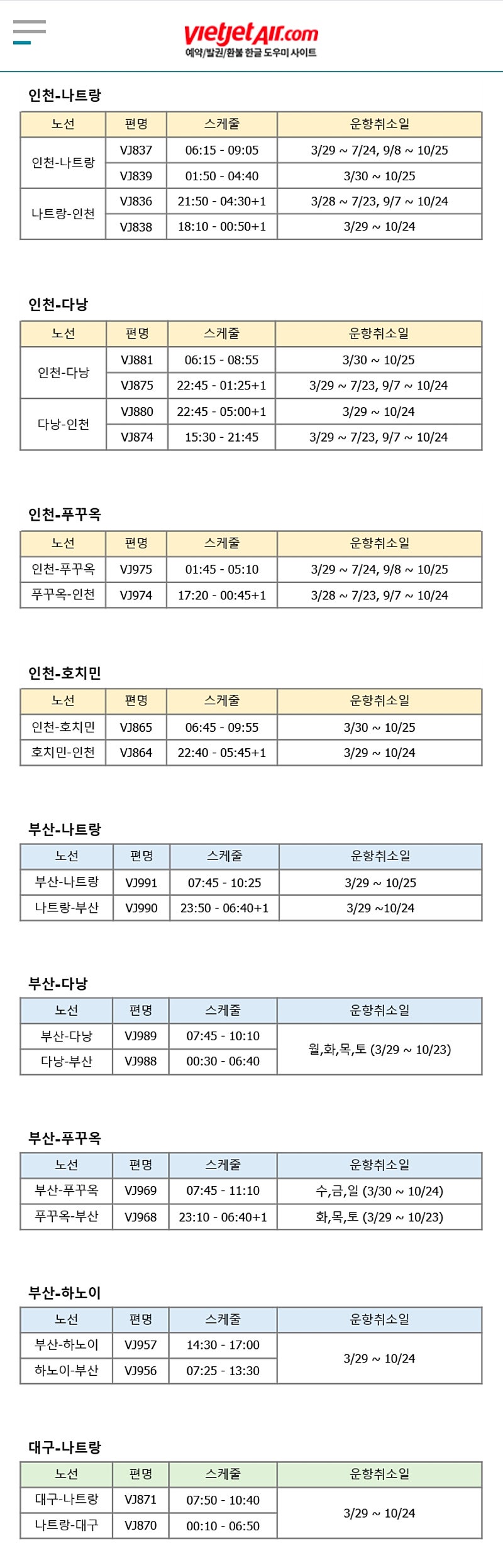 비엣젯 2026년 하계 스케줄 취소....