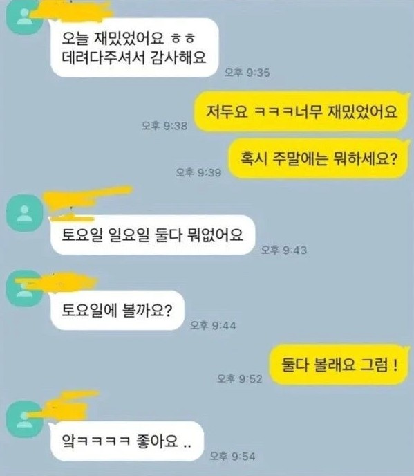 처음 만난 남녀가 호감 있을 때 나온다는 카톡
