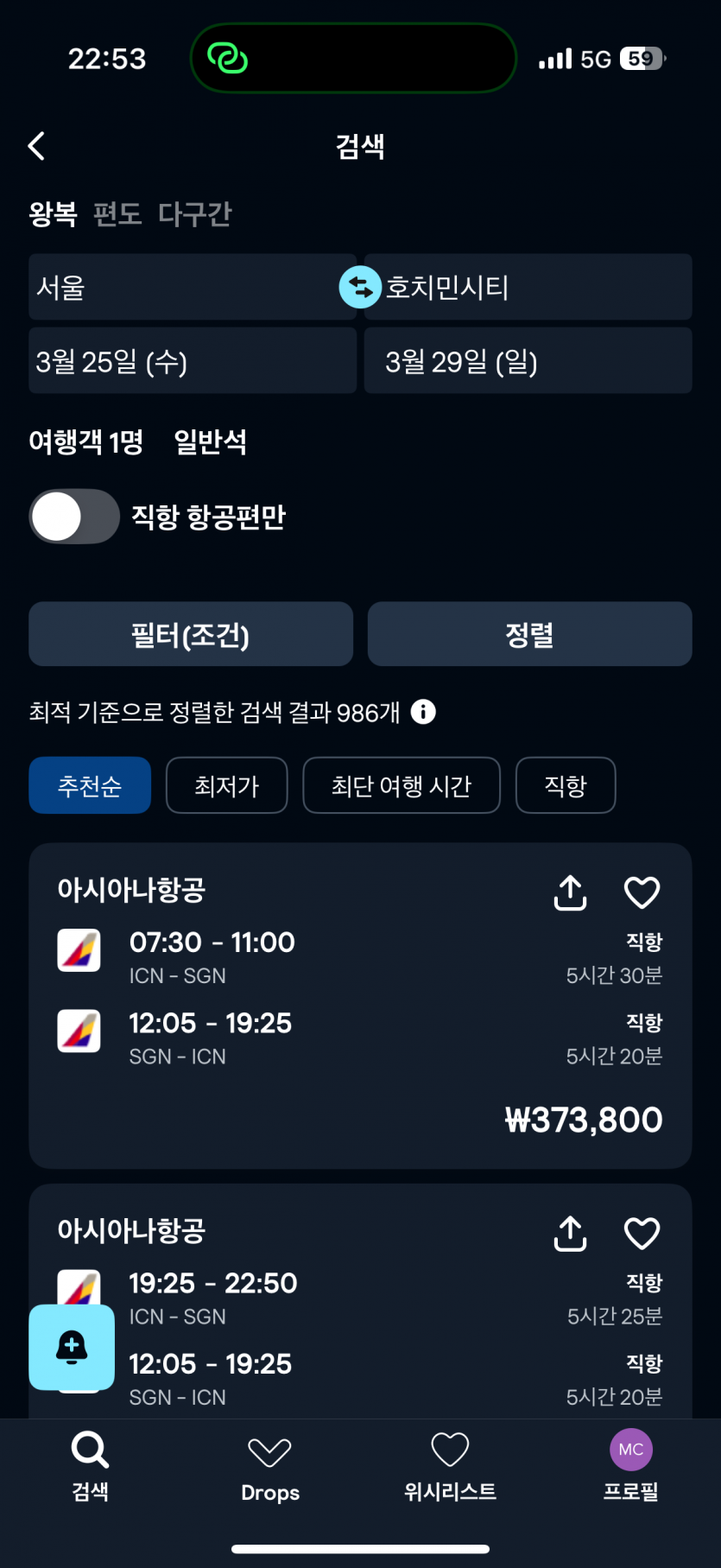 저는 항상 일 저녁 출발 금 정오귀국편 아샤나 로 댕기는데 어제까지 60만중반이었는데 방금드가보니 38만입니다