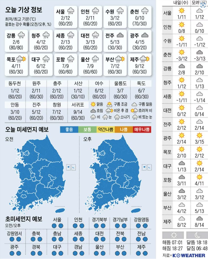 전국이 흐리고 비가 오네요! 그래도 봄이 다가오는 비일 테니 이제 따뜻한 계절이 오고 있음을 느껴 보겠습니다.