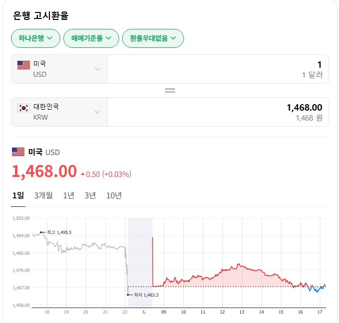 오늘 환율 정보입니다