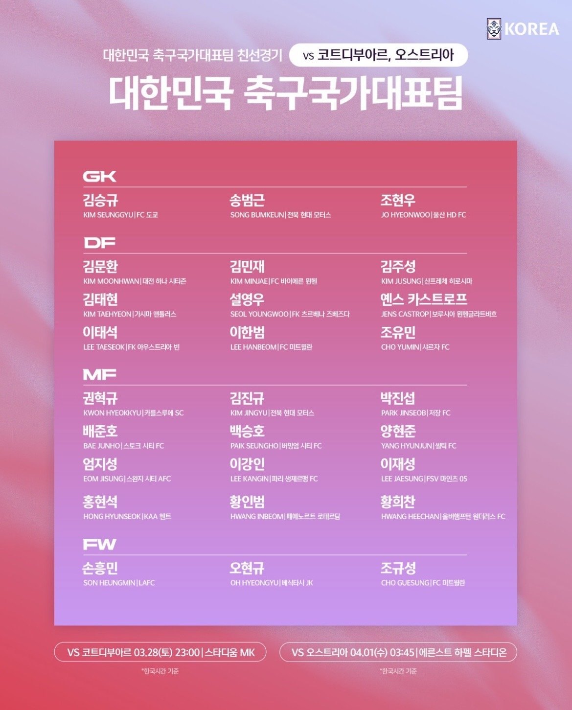 3월 축구 A매치 차출명단 이상형 9 82 0 18:45 안녕하세요~~퇴근 하고 계시는지요?^^3월 A매치 차출 명단 발표되었네요다 원정경기네요.요즘은 소속팀이 국내보다 해외파가훨씬많네요좋은경기 볼수있었음 좋겠네요맛저하세요~~ 0
