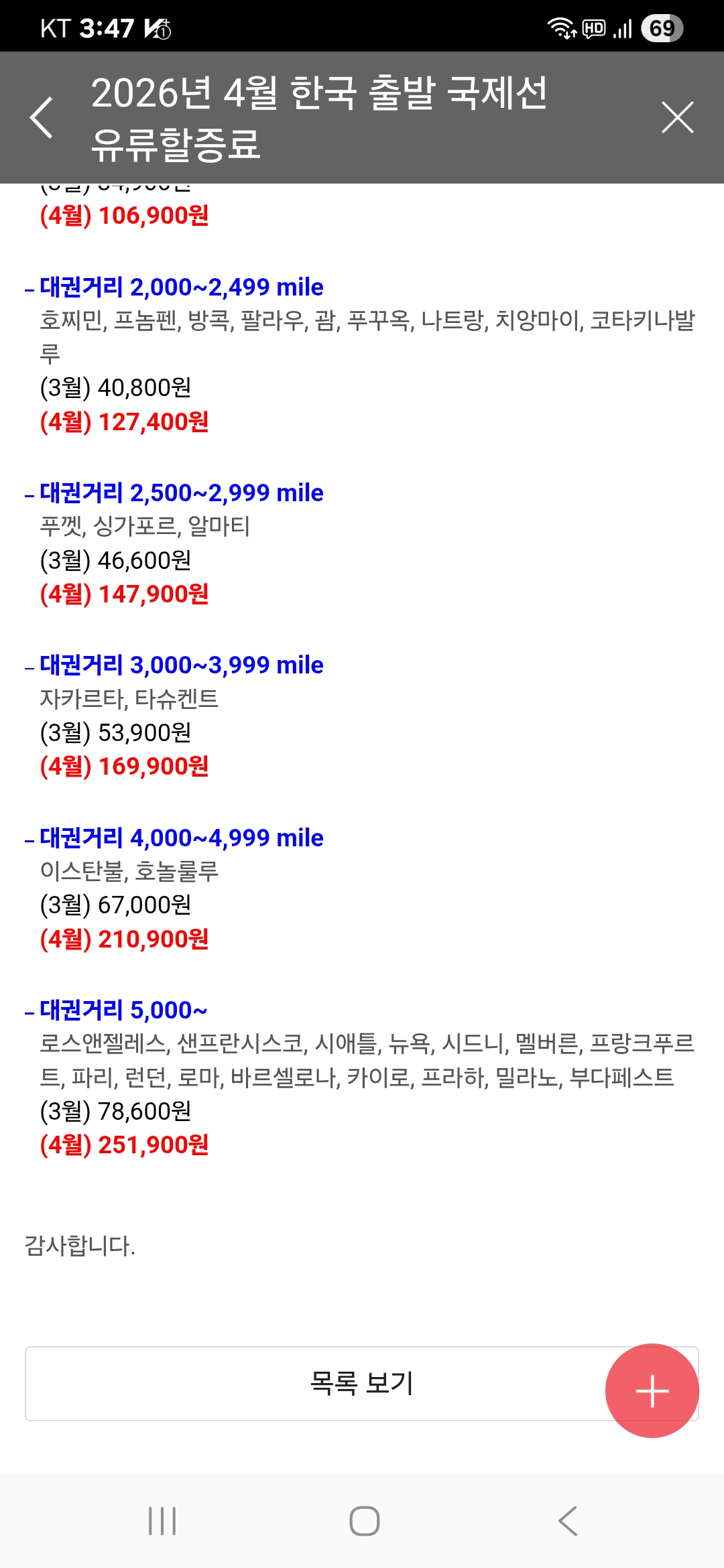 (홈피 공지)댄공, 아샤나 유류할증료 인상관련
