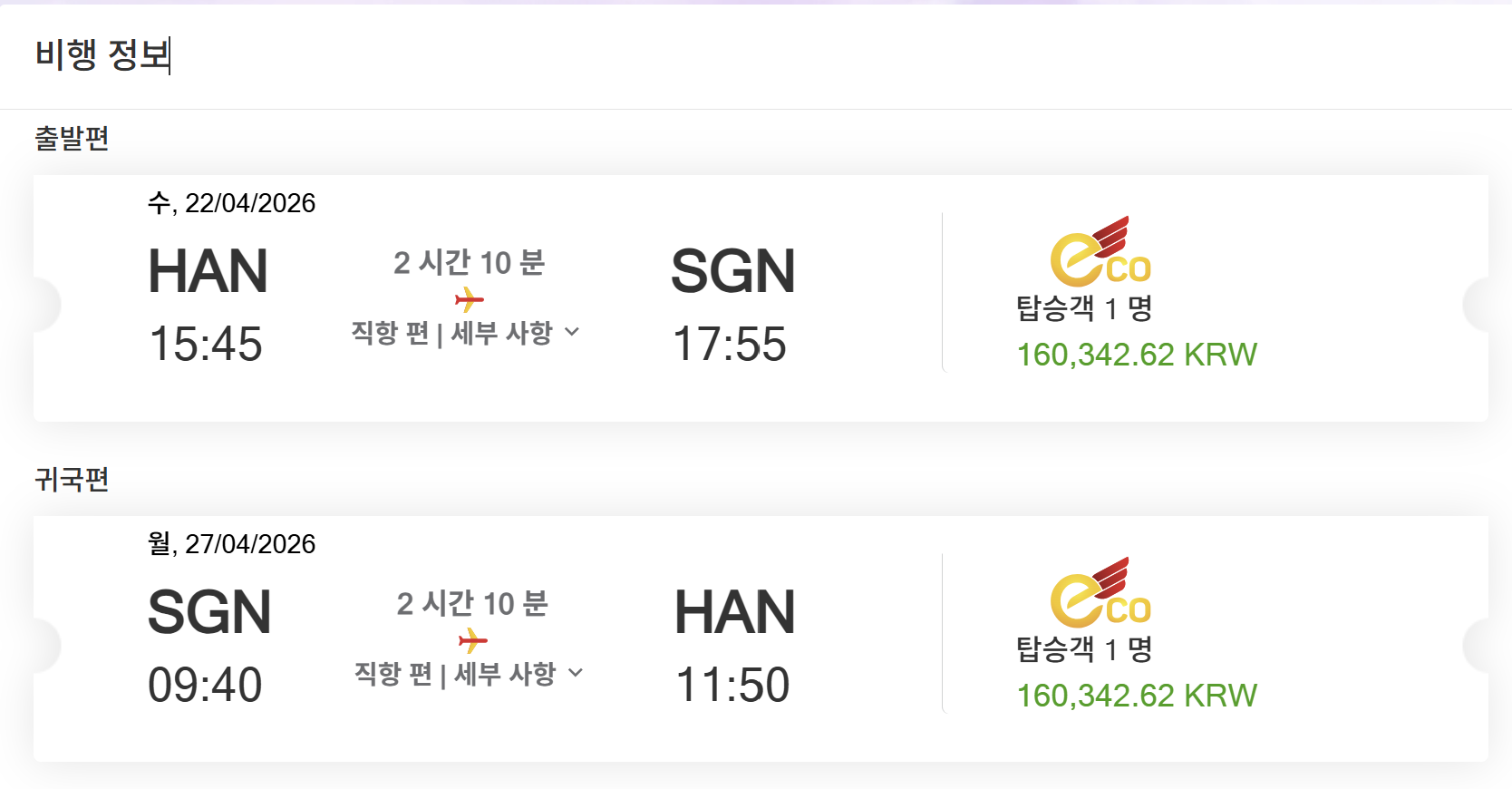 비엣젯으로 하노이에서 호치민 왕복하는 비용이 서울에서 호치민 왕복하는 과거의 비용과 비슷하네요.