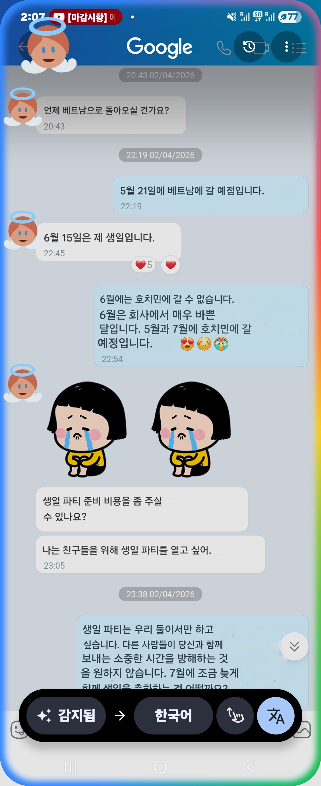 처음엔 베트남 언제 오냐고 물어보길래