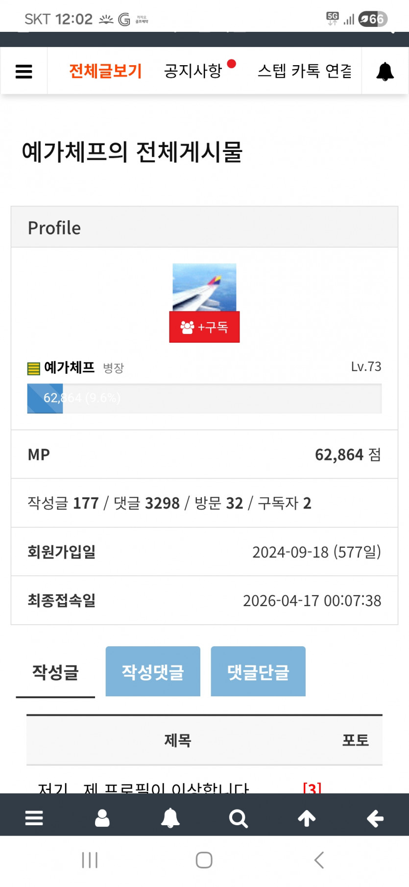 577일동안 작성글 10개 / 댓글 115개 / 방문이 겨우 32??
