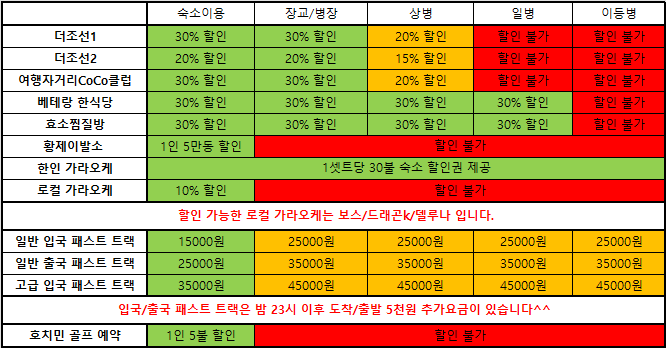 현재 카페 혜택 정리해놓은 표입니다^^